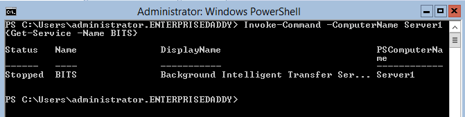 Invoke-Command -ComputerName Server1 {Get-Service -Name bits}