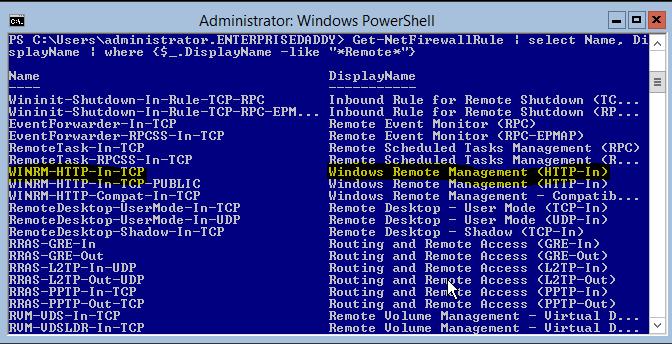 Get-NetFirewallRule -Name WinRM-HTTP-In-TCP | Set-NetFirewallRule -Enabled:True