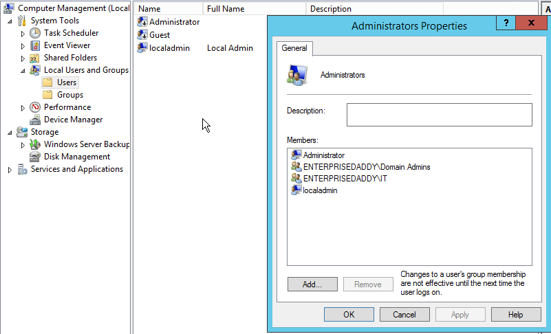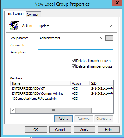 Next up we need to add the IT group to the Administrators group along with the localadmin account.