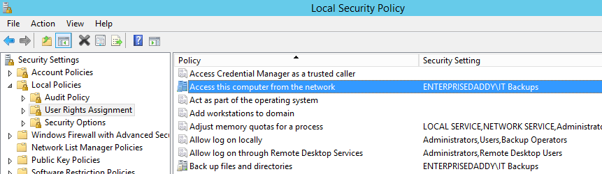 Configure User Rights Assignment