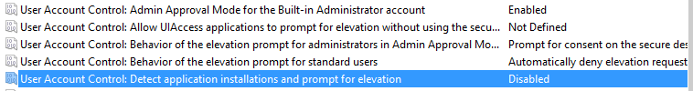 - Behaviour of the elevation for standard users: Automatically deny elevation requests.