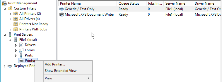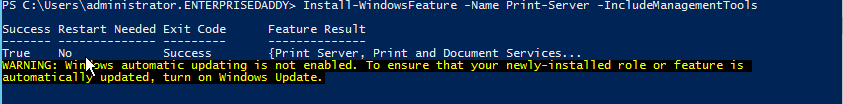 Install-WindowsFeature -Name Print-Server -IncludeManagementTools