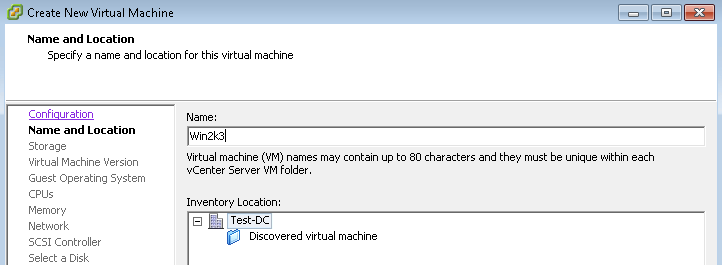 You would then have to select the location on the datastore that you want to store the Virtual Machine. It is best to select the datastore on which the vmdk files are located.