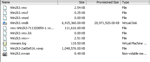 VMX file is the primary configuration file, which stores settings chosen in the New Virtual Machine Wizard or virtual machine settings editor.