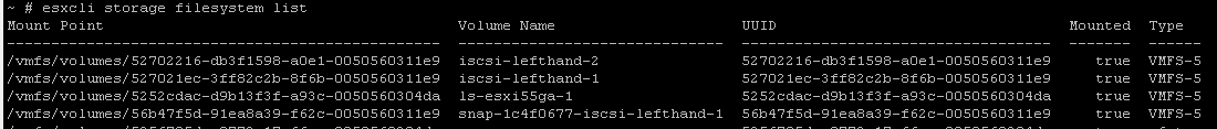 esxcli storage vmfs snapshot mount -u 527021ec-3ff82c2b-8f6b-0050560311e9