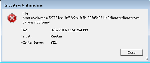 Save the file and we should now be able to successfully svMotion the Virtual Machine to a different datastore.
