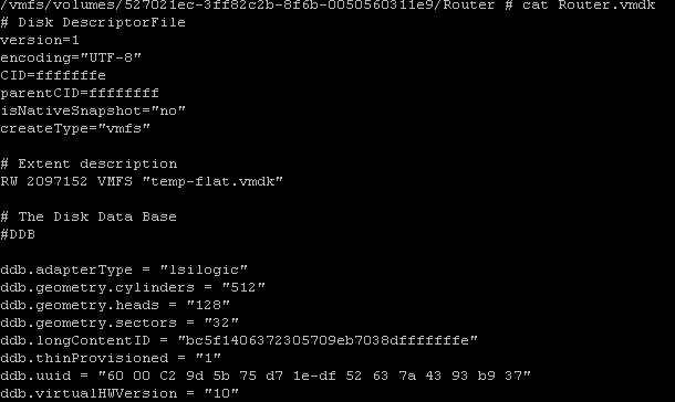 Using the vi editor, we can change to point to Router.vmdk as seen below.