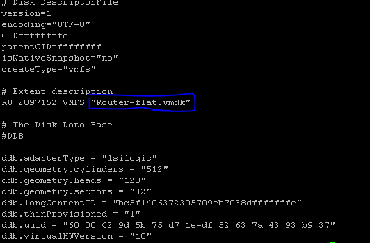 We are almost at the end of the process. We just have to edit our newly renamed Router.vmdk file to point to Router-flat.vmdk.