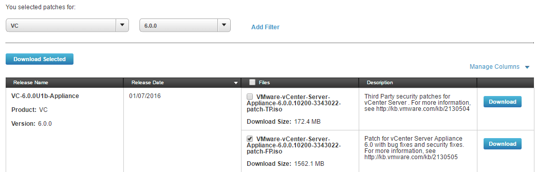 Next up, you will have to download VCSA 6.0 Update 1b Full Patch (VMware-vCenter-Server-Appliance-6.0.0.10200-3343022-patch-FP.iso) by visiting the VMware Download site.