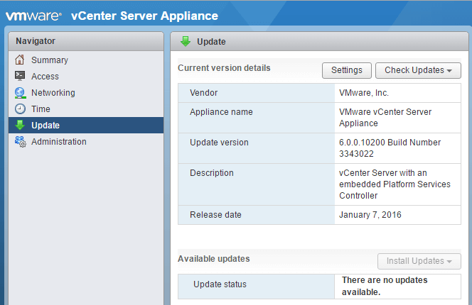 Another quick way to verify that you are running on Update 1 or higher is to simply open a browser session to http://VCSA-IP:5480, which should lead you to the new VAMI interface.