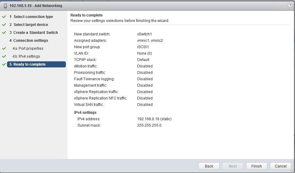 Well, we have finished setting up the networking part of the iSCSI port binding now.