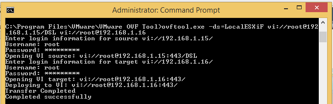 Now, we just need to specify the source ESXi host and the destination ESXi host as well as the datastore using the -ds option using the ovftool.