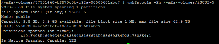 vmkfstools -Ph /vmfs/volumes/iSCSI-5