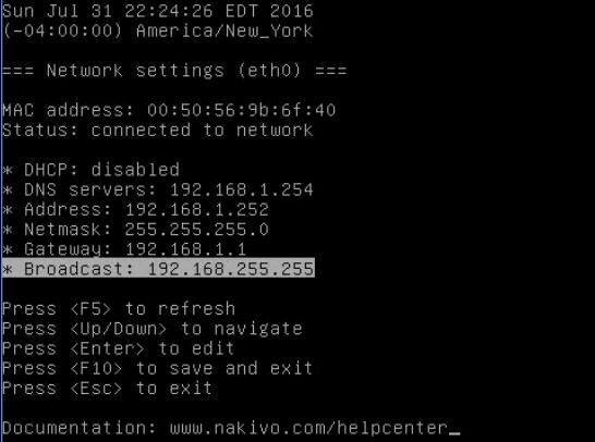 Once the Nakivo appliance is up , you will get to the console to configure system systems. Just select “Network Settings” & press enter to modify the hostname & IP details.